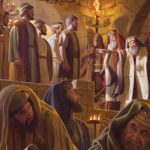 The High Priest tore his clothes and said: “What do we want witnesses for anymore? You have just heard his blasphemous words. What do you think? And they all agreed that he deserved the death penalty. After that, they beat him and spit on him, play the prophet they yelled at him and the Temple policemen slapped him.
